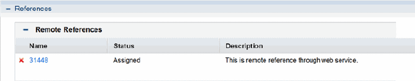 Remote reference items appear in the Reference section of a request. A remote reference is only available for the Web service interface and cannot be created through the PPM standard interface. The purpose of the remote reference is to link a request or an item on an external system to a request in the current PPM system.