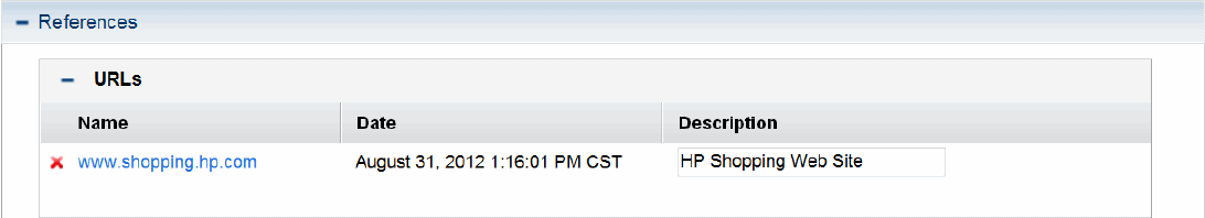 A URL reference refers to another type of item in the References section of a request. You can also create a URL reference by using the PPM standard interface.